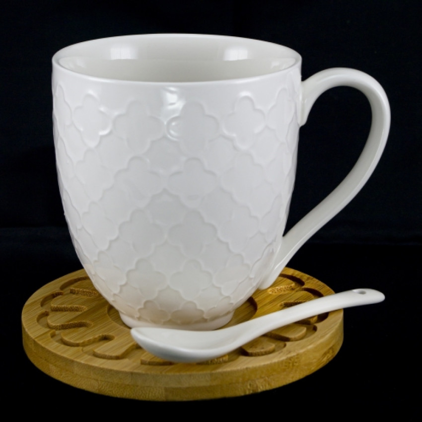 Чашка порцелянова з ложкою та дерев'яною підставкою 300мл
