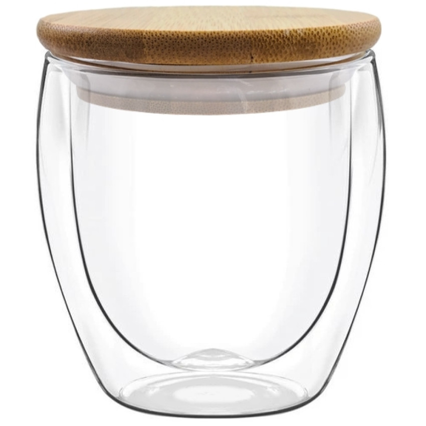 Чашка скляна 250мл з подвійним дном та кришкою