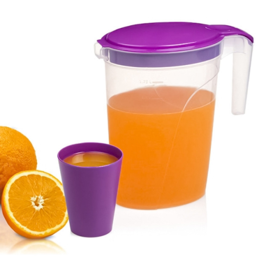 Глечик з кришкою "LIMO" - UCSAN Plastik виготовлений з гіпоалергенного матеріалу - поліпропілен Турецького виробництва. Ємність об'ємом 2000 мл + 4 пластикові склянки об'ємом 210 мл, дуже практичний набір виготовлений із високоякісного гіпоалергенного харчового пластику. абсолютно безпечний при контакті із продуктами харчування. Висока міцність матеріалу до механічних та хімічних впливів. Корпус прозорий, пластикова кришка виконана у різних варіаціях кольору. Склянки мають ідеально гладку поверхню, зручно складаються. Оригінальна конструкція носика виключає "останню краплю". Зручний та компактний для зберігання в холодильнику або кухонній шафі.