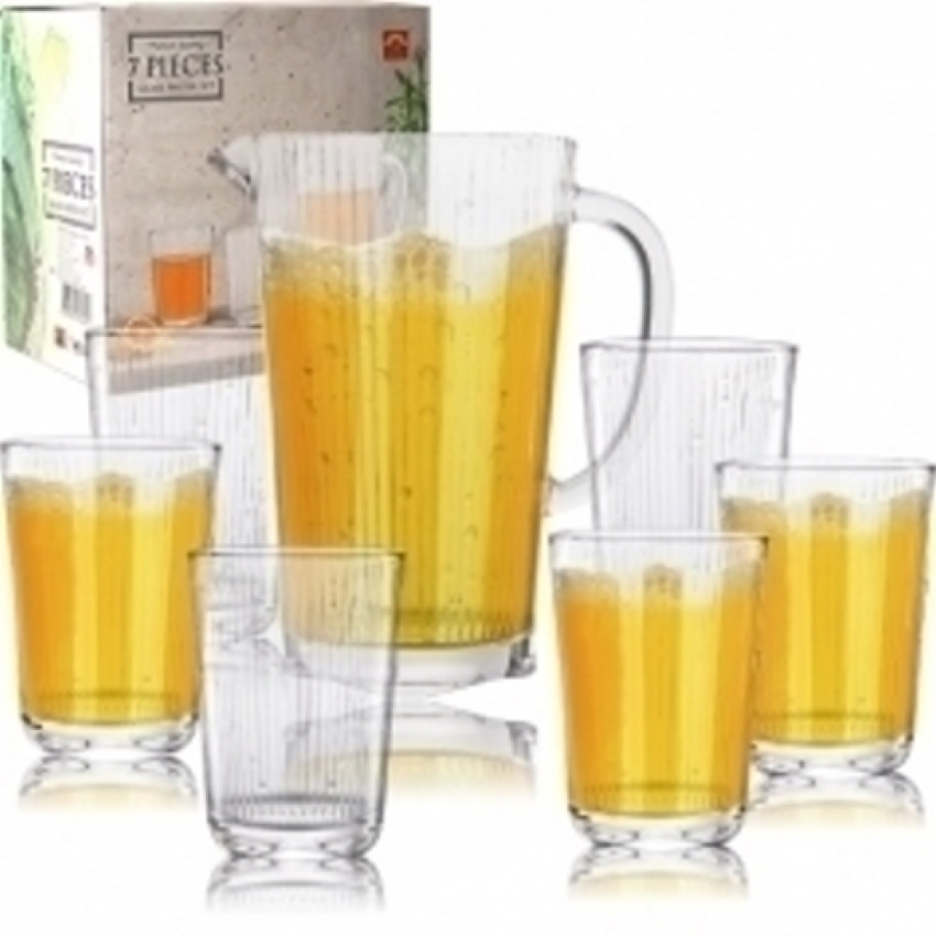 Набір Глек+6 Стаканів . Продукція виготовлена з високоякісного матеріалу, призначеного для миття у посудомийній машині. Стійка до подряпин і після багаторазового використання не втратить первісного вигляду. Ідеально підійде як для професіоналів, так домашнього використання.