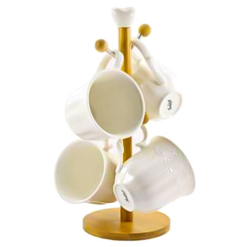 Набір порцелянових чашок на дерев'яній стійці 4-предмета