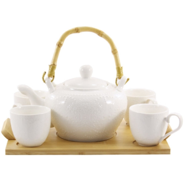 Набір 5 предметів фарфорових на бамбукових підставок - виготовлена з якісного фарфору, міцна глазур, стійка до подряпин та пошкоджень. Чудово підійде на подарунок.