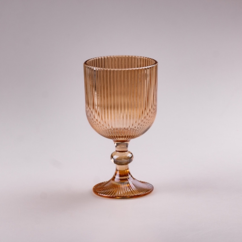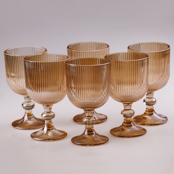Набір келихів для вина фігурних ребристих із товстого скла 6шт 380мл, бурштиновий