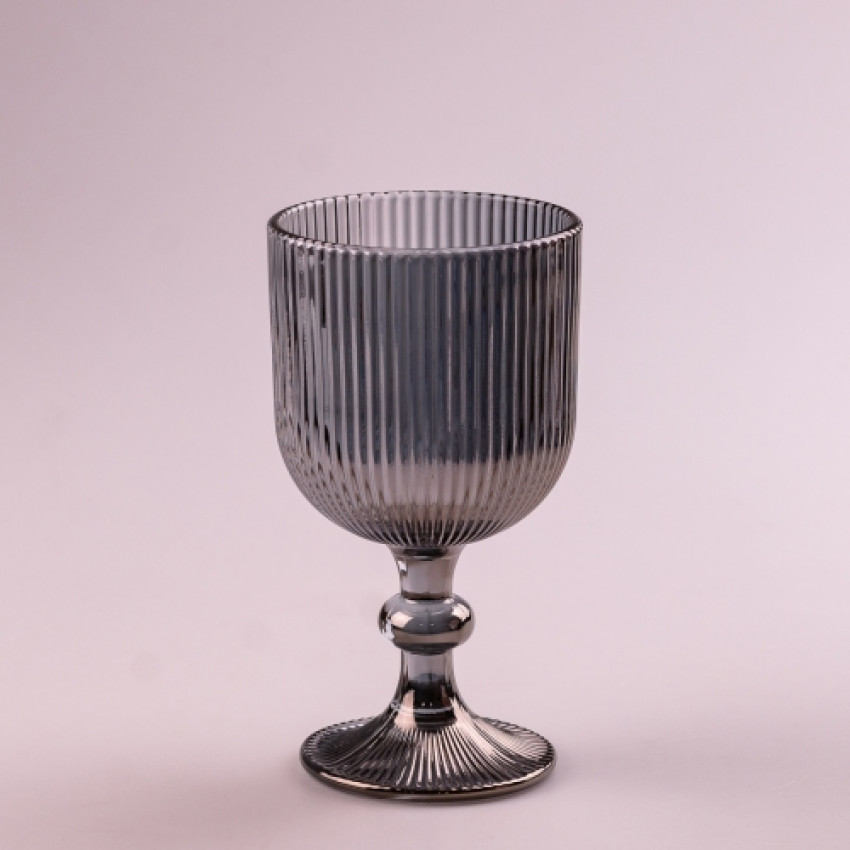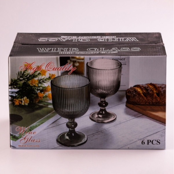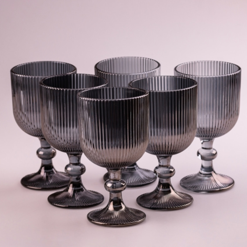 Набір келихів для вина фігурних ребристих із товстого скла 6шт 380мл, сірий