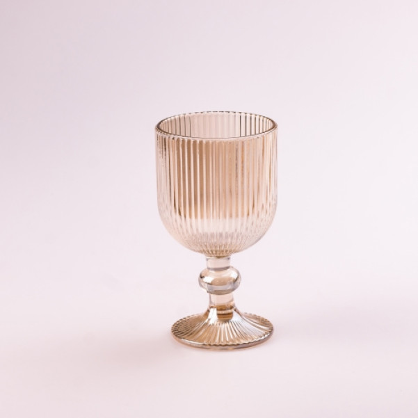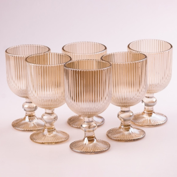 Набір келихів для вина фігурних ребристих із товстого скла 6шт 380мл, золотистий