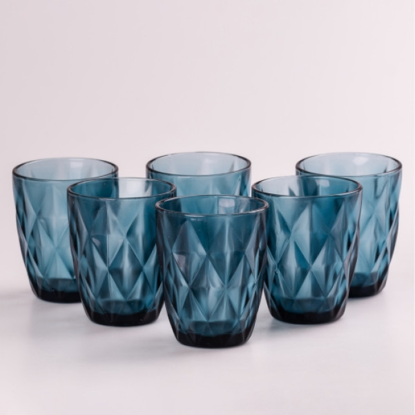 Набір склянок гранованих із товстого скла 6шт 270мл, синій