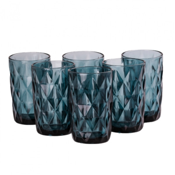 Набір склянок високих гранованих із товстого скла 6шт 240мл, синій