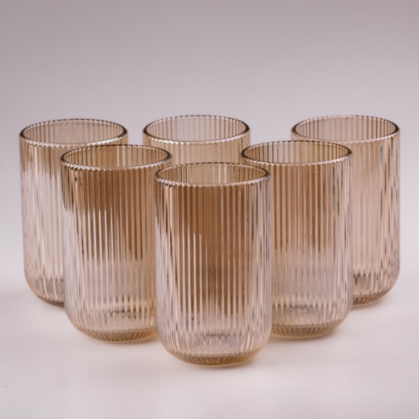 Набір склянок високих ребристих із товстого скла 6шт 400мл, золотистий