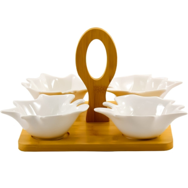 Менажниця 4-секційна 21см на деревяній підставці