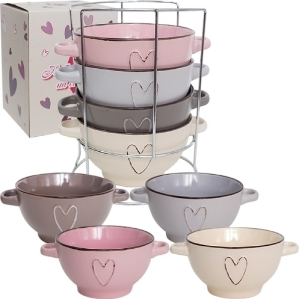 Набір 4 миски з ручками на стійці 680мл Hearts
