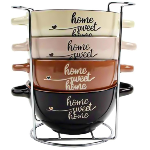 Набір мисок для супу і бульйону 4 миски по 440мл з ручками і хромованою підставкою.