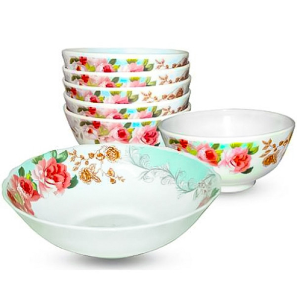 Салатники Троянда виготовлені зі склокераміки з підвищеною стійкістю до ударів. Вони використовуються при подачі салатів та десертів. Можна використовувати в мікрохвильовій печі для розігріву та мити в посудомийній машині.