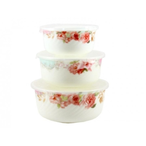 Набір салатників склокерамічних з кришкою 3-предмета Троянда