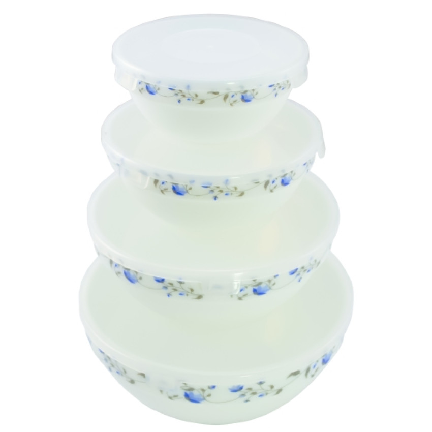 НАБІР салатників склокераміка з кришкою 4-предмета (14*16*19*24) СИНЯ КВІТКА . Салатники виготовлені з ударопрочной склокераміки, кришки пластикові. Можна використовувати в мікрохвильовій печі й посудомоечной машині.