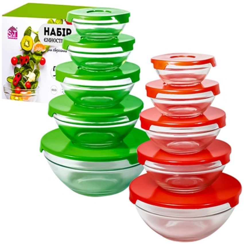 Набір круглі харчові контейнери з пластиковими кришками. Виготовлені із високоякісного скла. Ємності екологічні можна використовувати і для приготування, і для подачі страв. Завдяки пластиковим кришкам, у ємностях зручно зберігати продукти та приготовані страви. Можна використовувати для підігріву страв у мікрохвильовій печі.