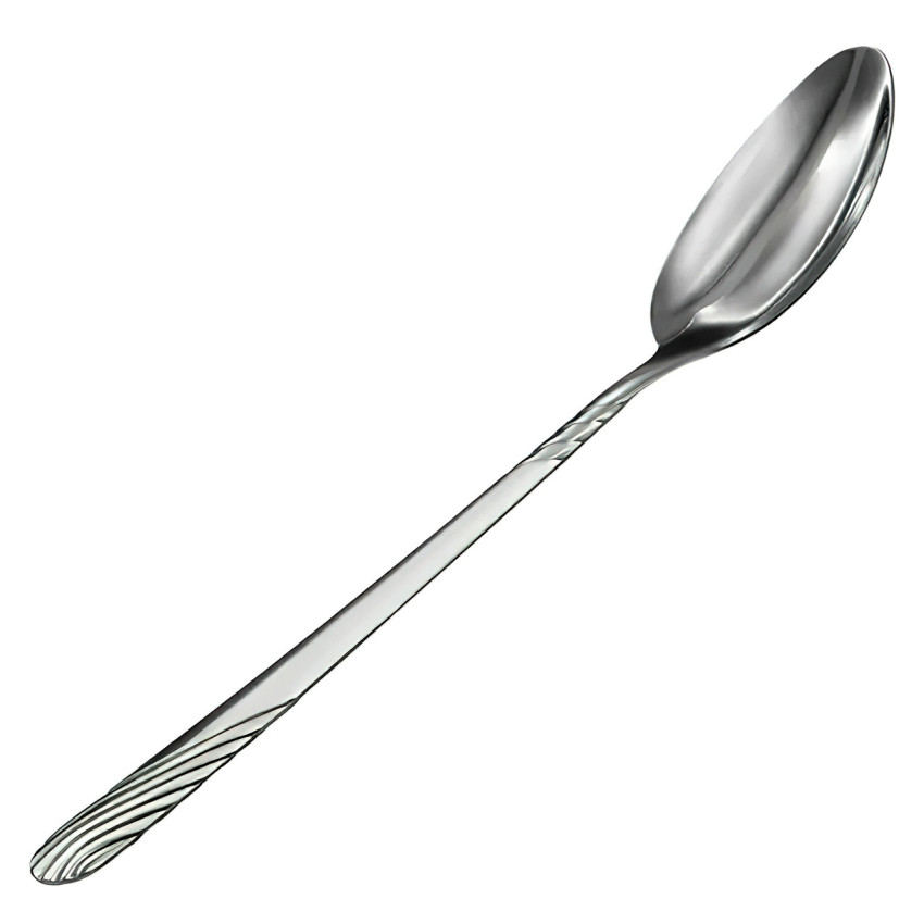 Ця столова ложка має унікальний вигляд зі стрічками-смугами на рукоятці, що надає їй особливого шарму. Вона виготовлена з високоякісної нержавіючої сталі, яка забезпечує їй міцність, довговічність і гладку поверхню.
