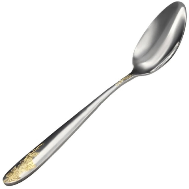Ложка Interos Вюнок Золотий виконаний із нержавіючої сталі. Столові прилади обов'язкові складові при сервіруванні будь-якого столу, чи це зустріч близьких друзів або ділової вечері. Ложка - чудовий помічник на кухні, а її стильний дизайн при сервіруванні неодмінно підійде до інтер'єру Вашої кухні.