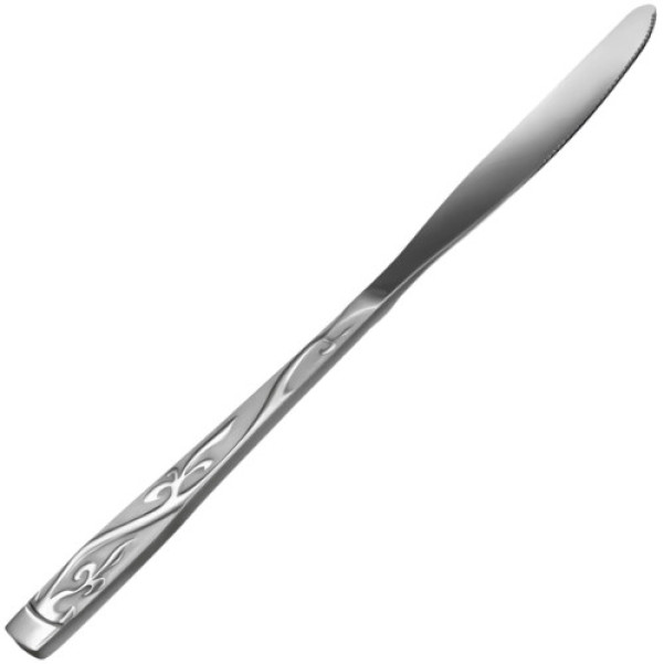 Ніж столовий ВІЗЕРУНОК - це кухонний ніж із металевою ручкою від компанії Interos. Такі ножі добре виглядають і на домашній кухні, і при подачі страв у закладах громадського харчування. Вони гострі, зручні у використанні та привабливо виглядають.