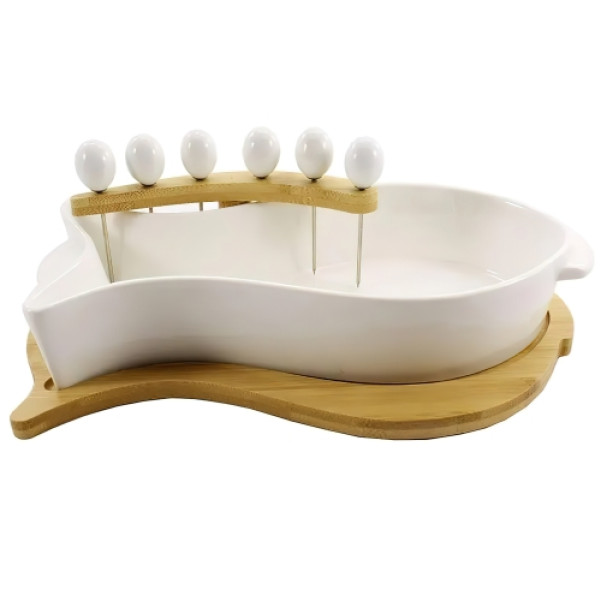 Блюдо 29см на дерев'яній підставці з 6 шпажками
