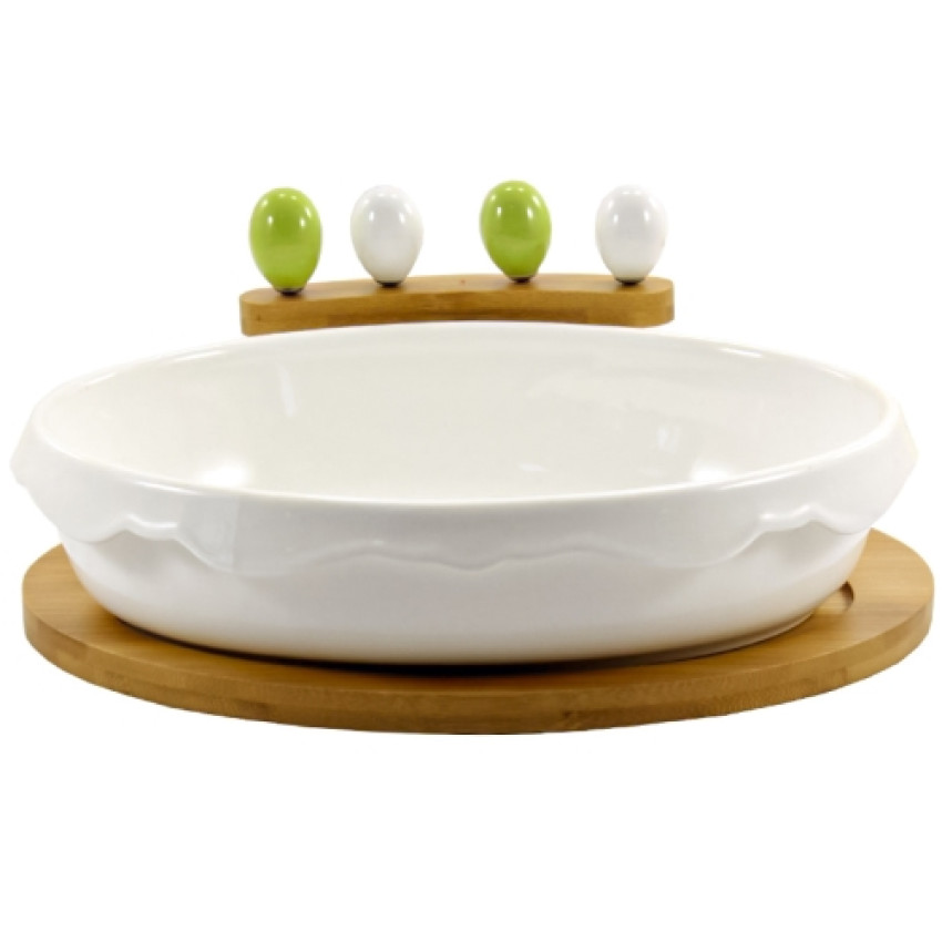 Блюдо на дерев'яній підставці з 4 шпажками ∅24см