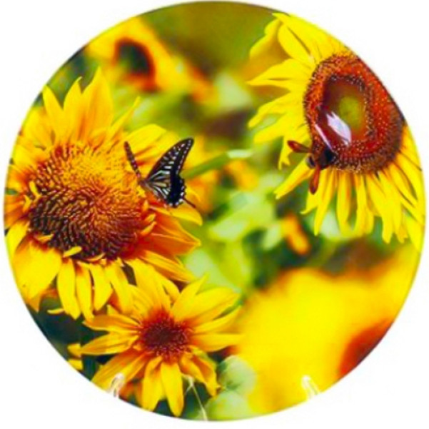 Блюдо скляне кругле ∅30см Соняшник з метеликом