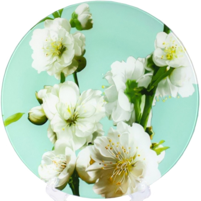 Блюдо скляне кругле ∅30см Яблуня бірюзова