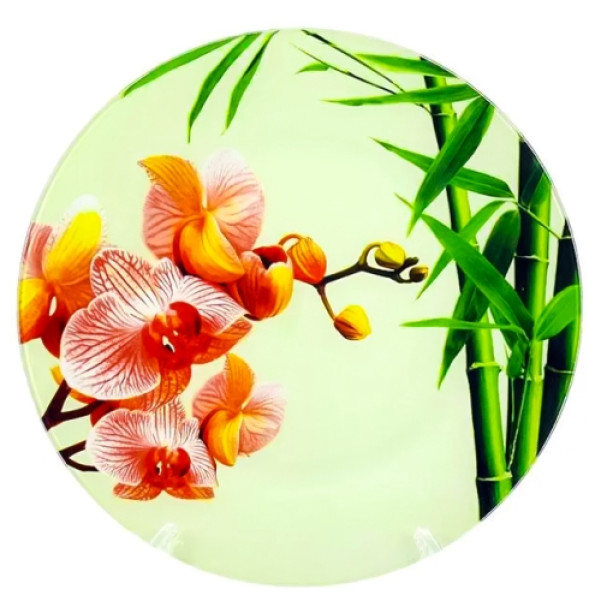 Воно має круглий дизайн та діаметр 30см, що робить його ідеальним для подачі салатів, фруктів, закусок та інших страв, які вимагають великого простору. Рожевий візерунок на склі додає блюду особливої привабливості та розкіші.