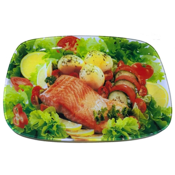 Блюдо скляне прямокутне 30х21см Овочі/Риба