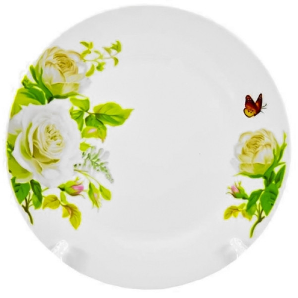 Виготовлена з високоякісного фарфору, ця тарілка має гладку поверхню і біле покриття, що надають їй чистоту та елегантність. На тарілці нанесений декоративний малюнок у вигляді білих троянд, який додає їй неповторний шарм і розкіш.