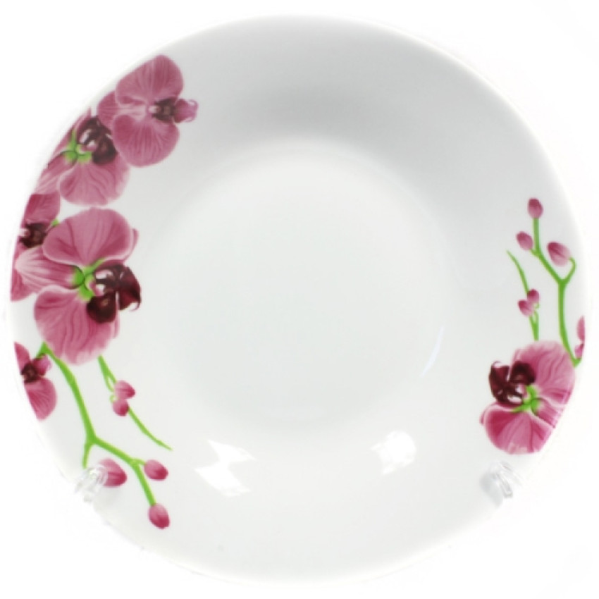 Фарфорова тарілка з принтом Орхідея. Варіант фарфорового посуду є одним з кращих, так як володіє цілим рядом переваг. По-перше, такий посуд дуже міцна. Сучасні методи виробництва дозволяють добитися високих показників. По-друге, фарфор відмінно утримує тепло. Досвідчені ресторатори найчастіше вибирають подібні вироби, щоб їх клієнти завжди отримували тільки найкраще.