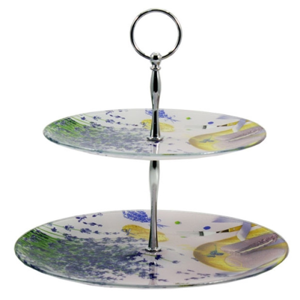 Фруктовниця скляна кругла 2 яруси Лаванда макарун