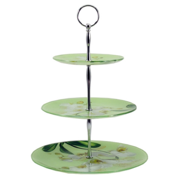 Фруктовниця скляна кругла 3 яруси Орхідея