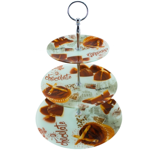 Фруктовниця скляна Шоколад, 3-ярусна кругла, з розмірами 6", 8" і 10" - це стильна та практична фруктовниця, створена для ефектного та зручного сервірування фруктів та інших солодощів. Її дизайн натхненний шоколадом, що додає елегантності та привабливості.