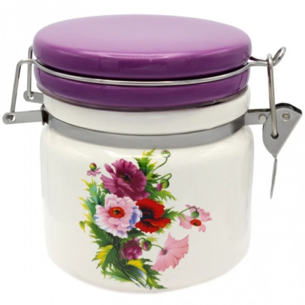 Банка з замком Interos Маки виготовлена з кераміки, має кришку на затяжках. Кришка забезпечує герметичність завдяки силіконовим проставкам на краях. Призначена для зберігання крупи, варення, меду, горіхів, макаронів. Продукти не втратять свій аромат і не будуть сиріти. Доломіт є полегшеною керамікою. Банка для сипучих продуктів покрита білою глянцевою глазур'ю. Замок-фіксатор зроблений з хромованої нержавіючої сталі. Поставляється в презентаційній подарунковій упаковці.