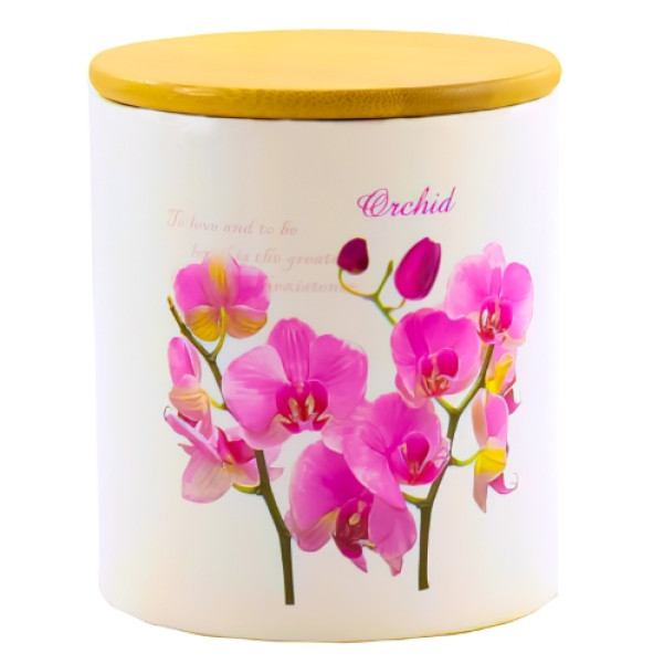 Банка керамічна з дерев'яною кришкою 850мл Орхідея рожева