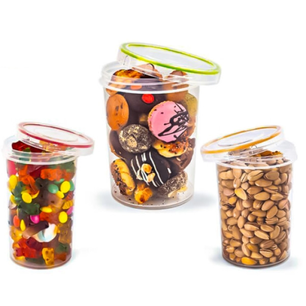 Кожна ємність має герметичну кришку, яка надійно закривається, щоб уникнути витоку і запахів. Це дозволяє зберігати продукти в оптимальних умовах, захищаючи їх від вологості, пилу і шкідливого впливу зовнішнього середовища.