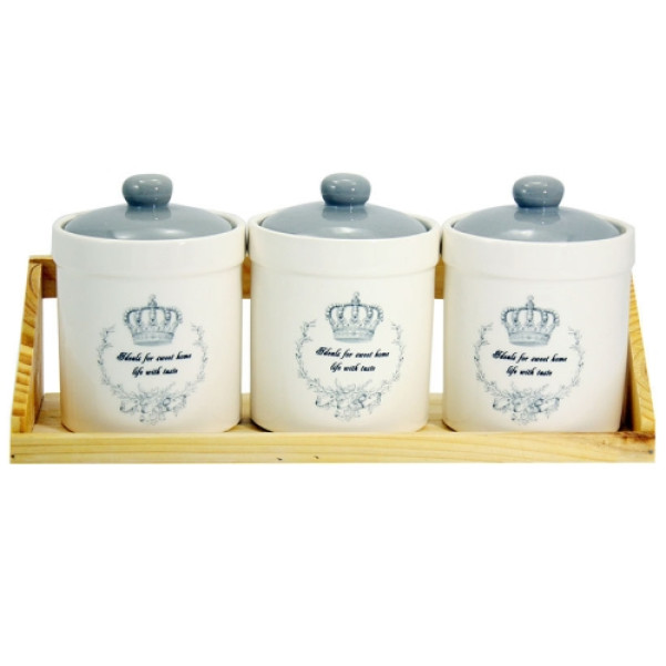 Набір банок для сипучих на дерев'яній підставці 500мл Корона