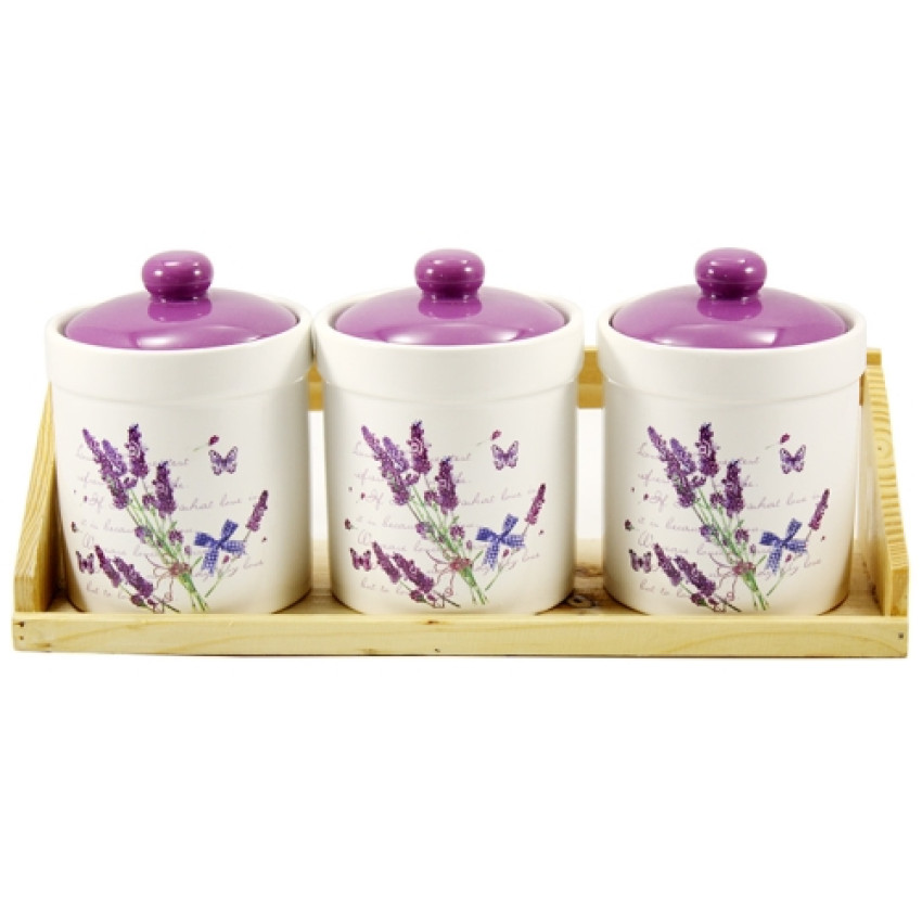 Набір банок для сипучих на дерев'яній підставці 500мл Лаванда