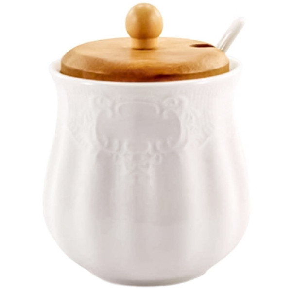 Цукорниця фарфорова 340мл з ложкою та дерев'яною кришкою