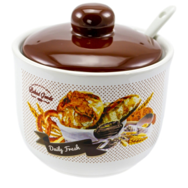 Цукорниця 350 мл Interos Хліб - виготовлена з кераміки. Призначений для зберігання цукру, також для інших сипучих. Виконана з якісної кераміки, стійка до впливу зовнішнього середовища, не вбирає запахи. Зручна і проста у догляді, позику гідне місце на вашій кухні завдяки елегантному дизайну і високій якості. Дуже красиво буде виглядати при сервіруванні столу під час чаювання. Цукорниця керамічна з ложкою - упакована фірмову коробку, завдяки чому підійде в якості подарунка.