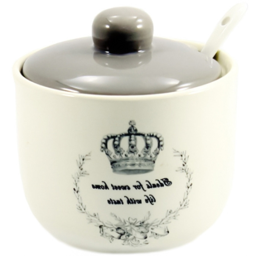 Цукорниця 350 мл Interos Корона - виготовлена з кераміки. Призначений для зберігання цукру, також для інших сипучих. Виконана з якісної кераміки, стійка до впливу зовнішнього середовища, не вбирає запахи. Зручна і проста у догляді, позику гідне місце на вашій кухні завдяки елегантному дизайну і високій якості. Дуже красиво буде виглядати при сервіруванні столу під час чаювання. Цукорниця керамічна з ложкою - упакована фірмову коробку, завдяки чому підійде в якості подарунка.