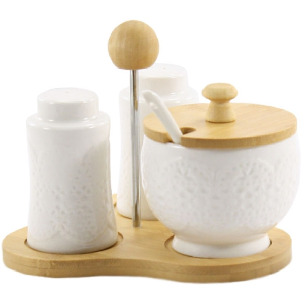 Набір фарфоровий 3-предмета на дерев'яній стійці (цукорниця+сільничка+перечниця) PJ02561
