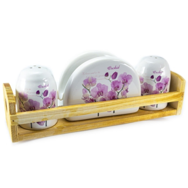 Набір керамічний для спецій з серветницею Орхідея Рожева