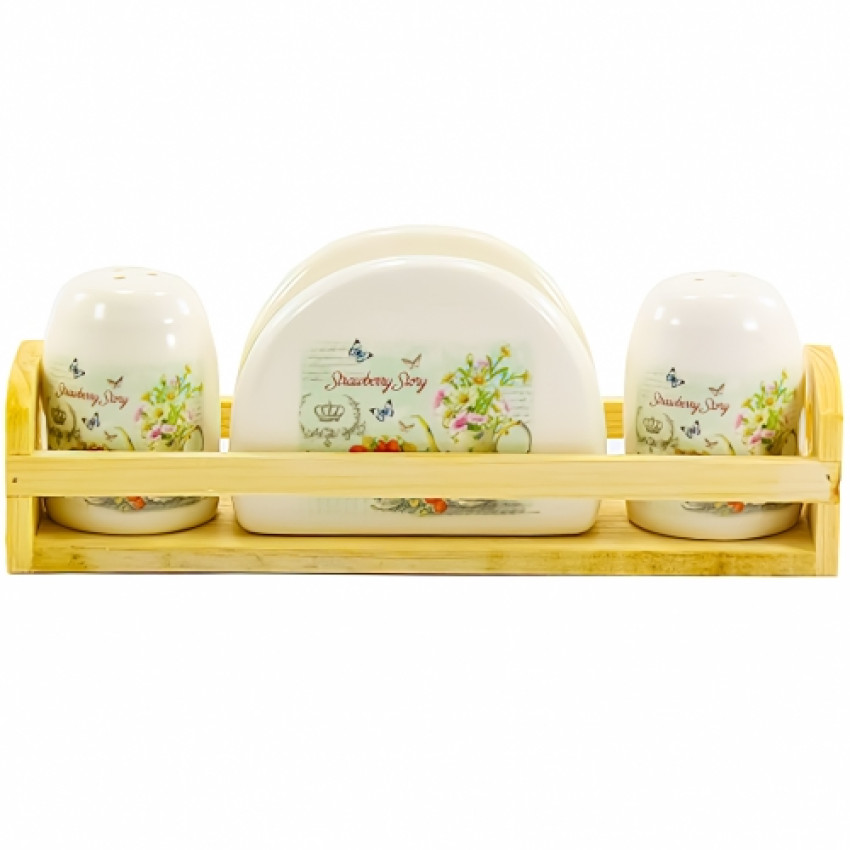 Набір керамічних ємностей для спецій з серветницею Полунична історія ZF 3529 SS - це стильний набір, який допоможе вам організувати зберігання і дозування різних спецій і прянощів.