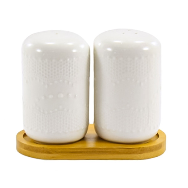 Сільничка і перечниця на дерев'яній підставці PJ02563
