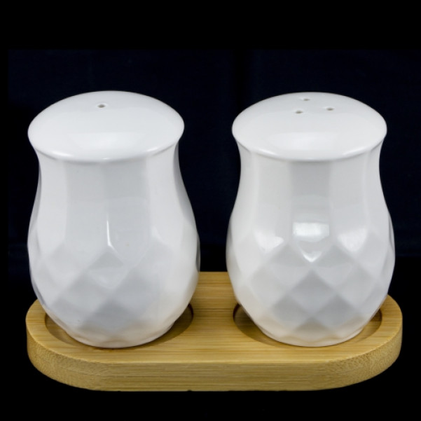 Сільничка і перечниця на дерев'яній підставці PJ02812