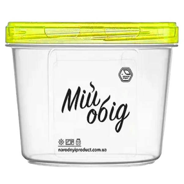 Лоток круглий "Мій обід" №81ж 1л (жовта кришка) .Судок досить невибагливий у догляді, Вам не доведеться його довго мити, тому що всі його кути закруглені, а отже залишки їжі легко змиються струменем мильної води.