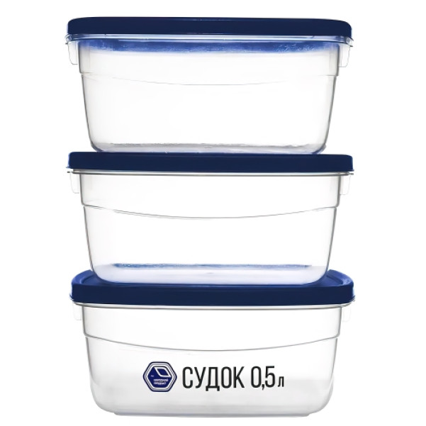 Набір судків універсальних 3х0,5л №92і (індиго (синя) кришка).Щільно прилягаюча до стінок кришка запобігає випадковому розкриттю ємності, отже Ви можете без перешкод взяти з собою будь-яку страву.
