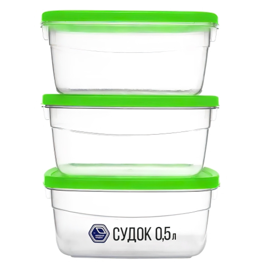 Набір контейнерів — це універсальний комплект з трьох контейнерів, кожен об'ємом 500 мл. Вони ідеально підходять для зберігання їжі, перекусів або приготованих страв, забезпечуючи свіжість продуктів протягом тривалого часу. Яскравий зелений колір додасть стилю вашій кухні, а зручні розміри контейнерів дозволяють їх використовувати для транспортування їжі або компактного зберігання у холодильнику.