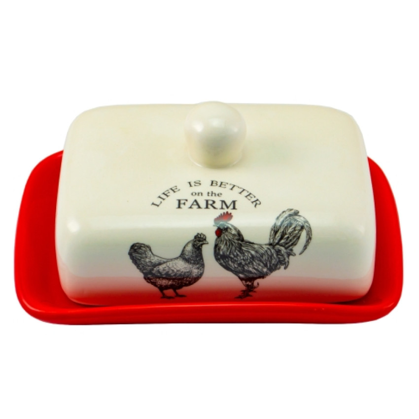 Зберігати вершкове масло в спеціальній маслянки набагато зручніше і естетичніше, ніж в упаковці. Масляничка з кришкою Interos Ферма - це зручне пристосування для зберігання вершкового масла в холодильнику, допоможе вам зберігати масло в холодильнику довше, так як воно буде залишатися закритим. Така маслянка може стати прекрасним подарунком для любителів традиційних і функціональних предметів в інтер'єрі кухні, поставляється в презентабельній упаковці.